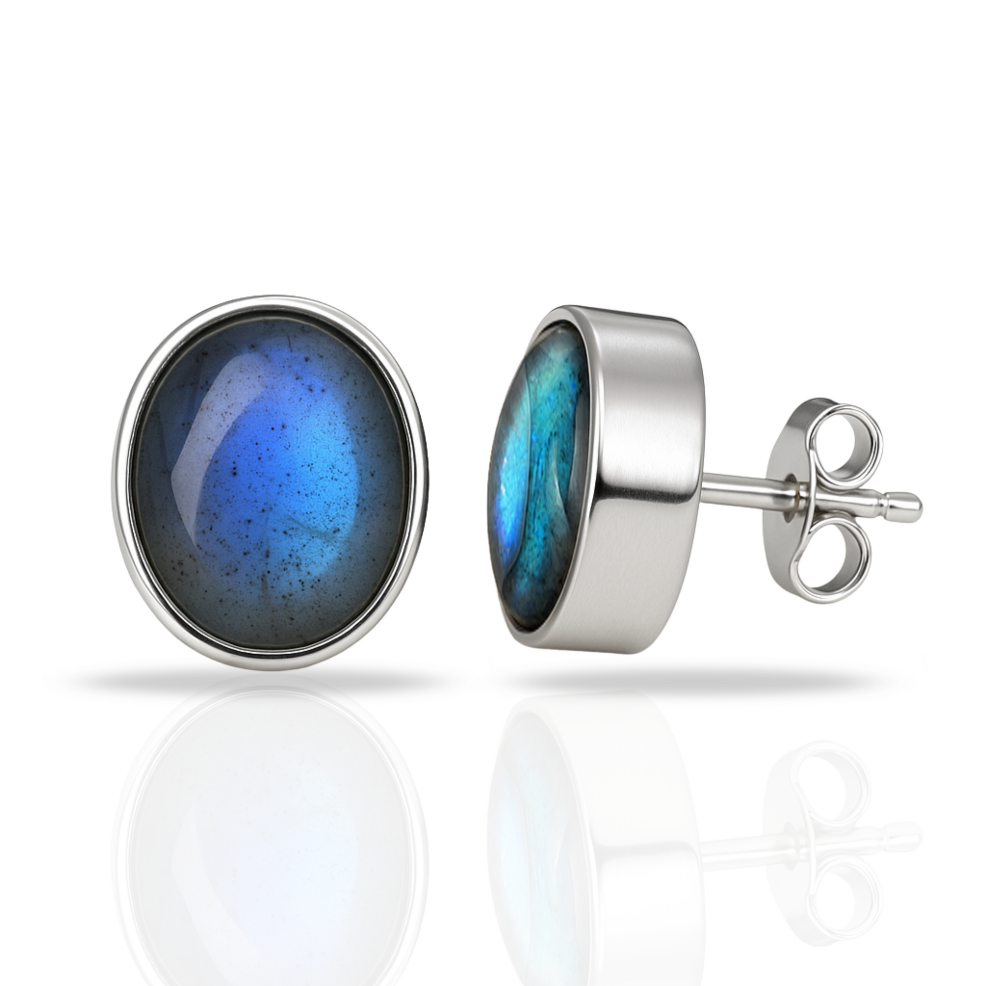 Cercei ovali cu Labradorit natural