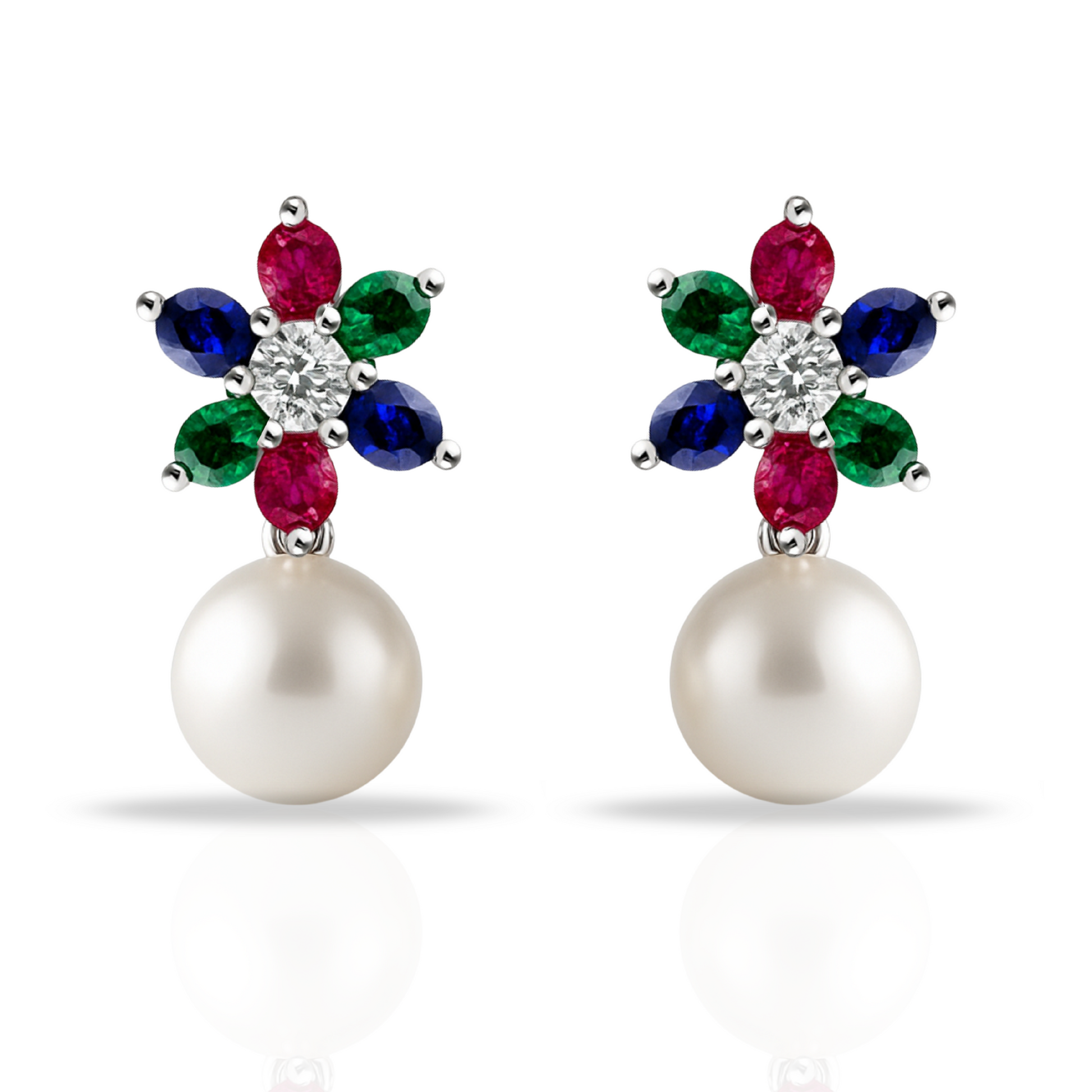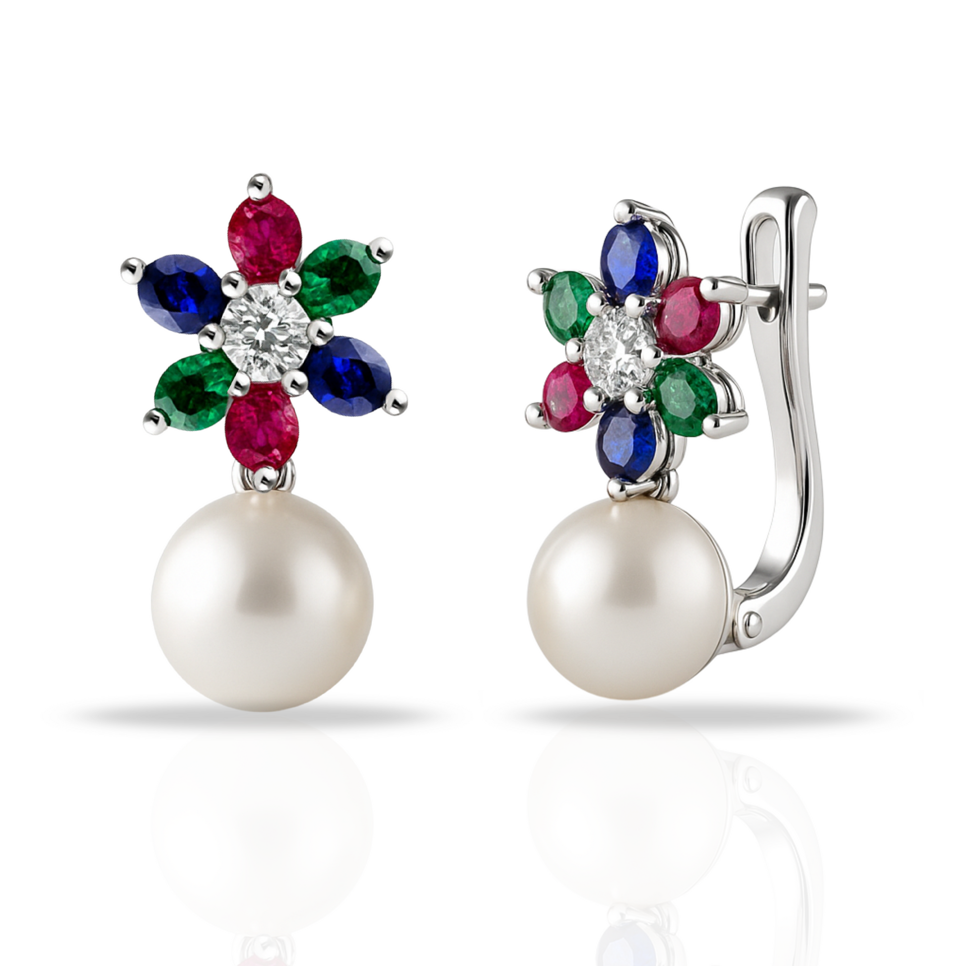 Cercei floare si perla multicolori